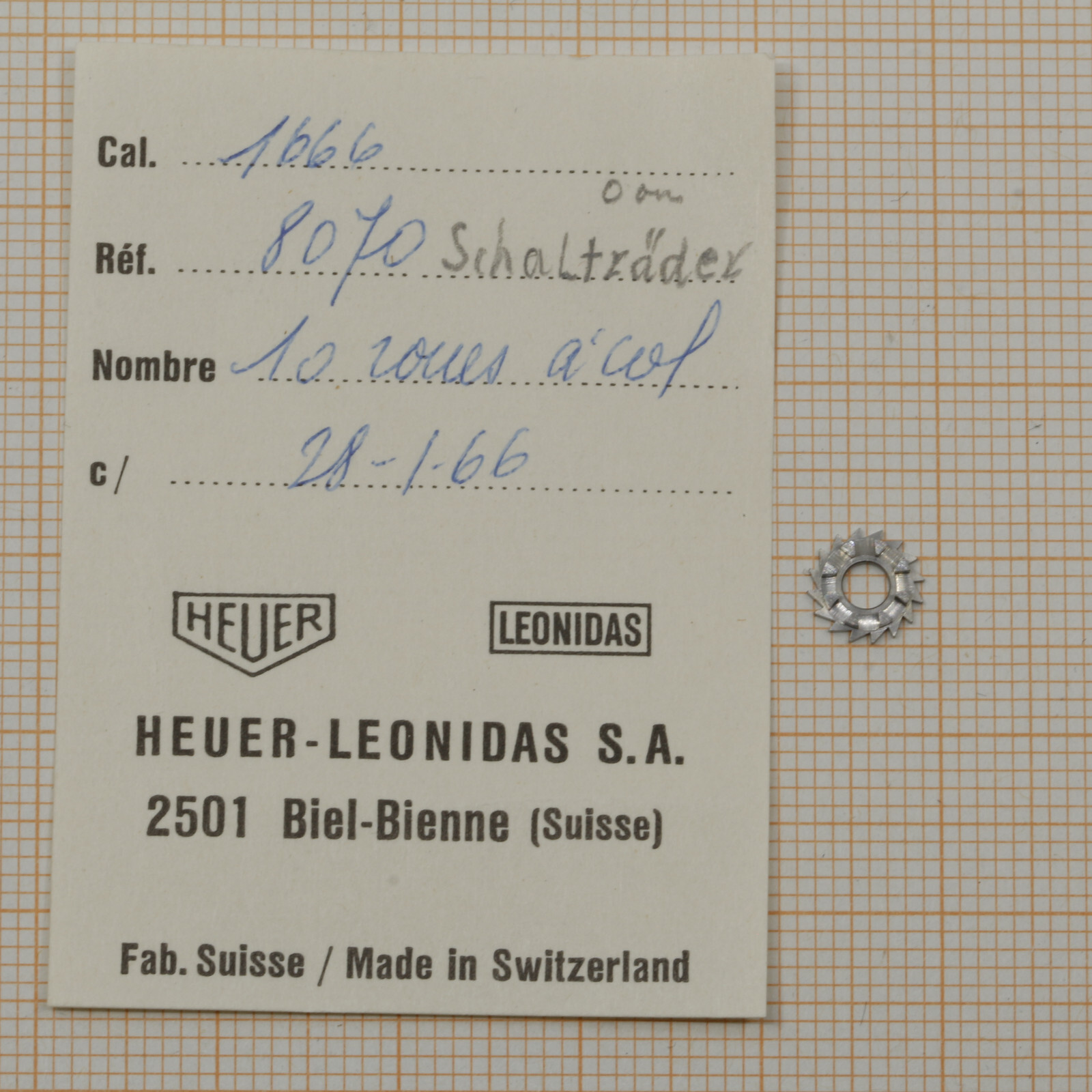 Initially a calibre A. Schild 1666 was used, from 1967 a caliber Valjoux 7714.