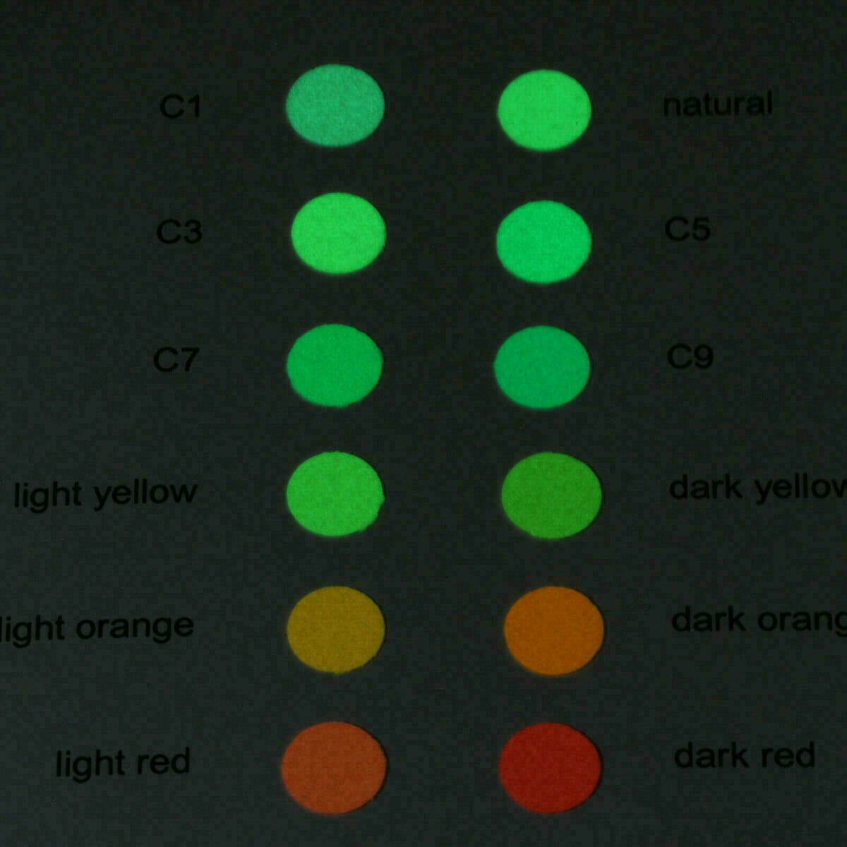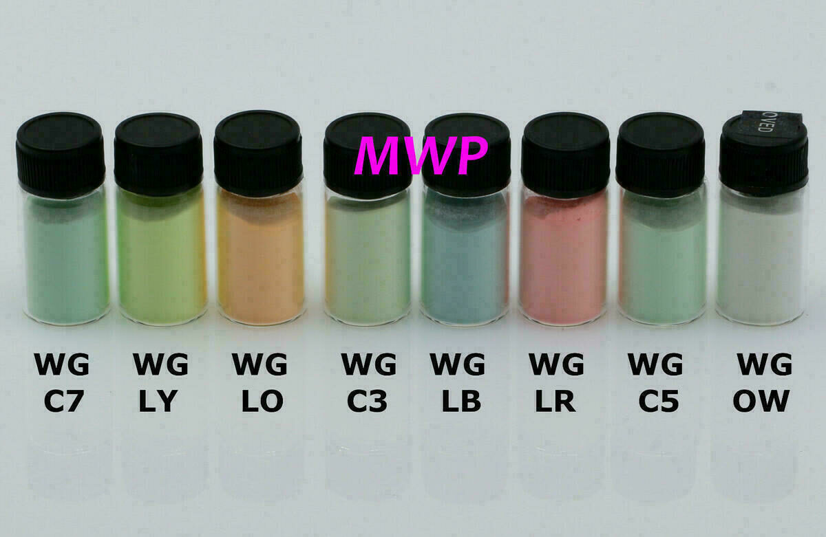 Please notice: Pigments with pure white body color are glowing weak