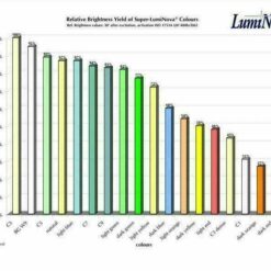 If sufficient activation by UV- or sunlight has occurred, standard quality BG W9 shows a %262 higher luminous performance after 10 minutes compared to GL C1 standard quality. After 600 minutes, the performance is still 189% higher than the GL C1 standard quality.