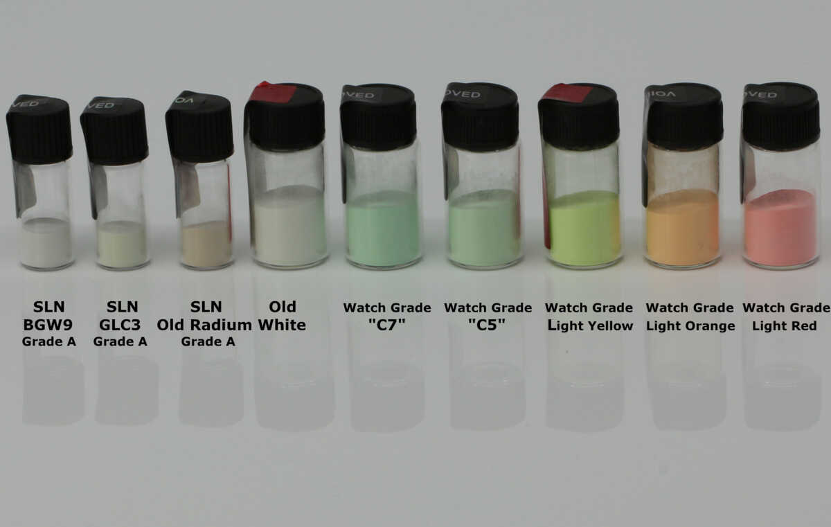 12) 1 gram Swiss Super-LumiNova® GL C1 Grade X1 + 3 gram Varnish A60 + 3 gram Thinner A61