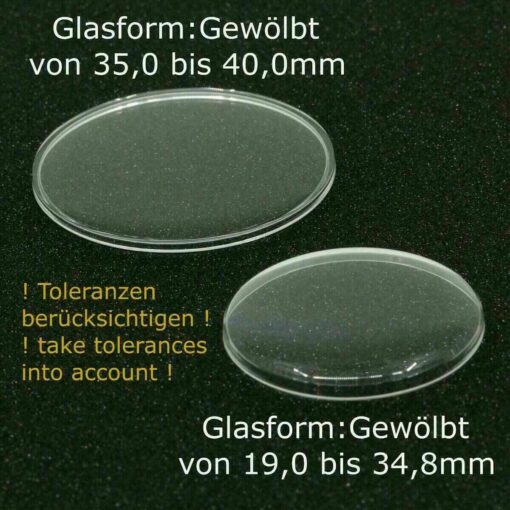 - Bitte beachten Sie: Aufgrund des Herstellungsverfahrens der Kunststoff-Uhrengläser kann es zu Toleranzen kommen
