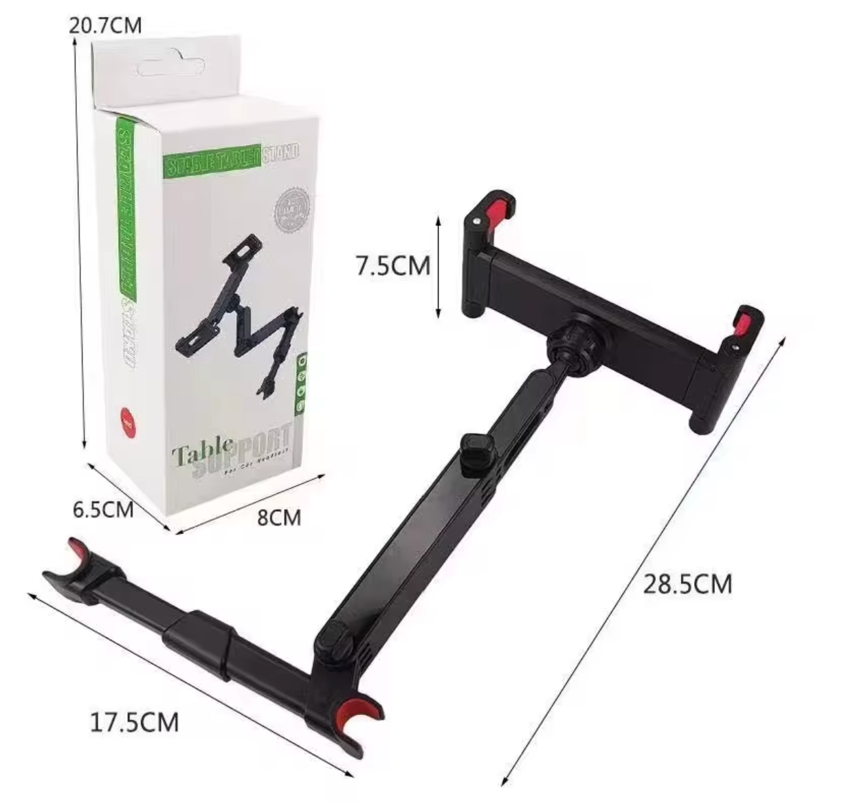 1x oder 2x Tablethalterung mit gummierten Klemmen je nach Auswahl.